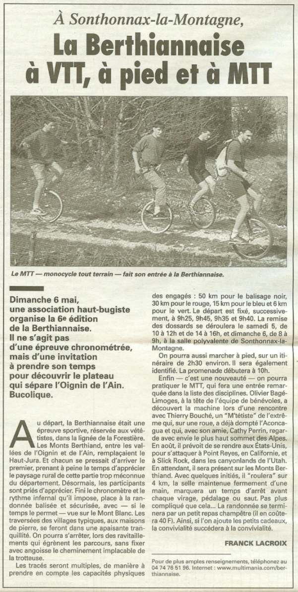 Enfin - c'est une nouveauté - on pourra pratiquer le MTT